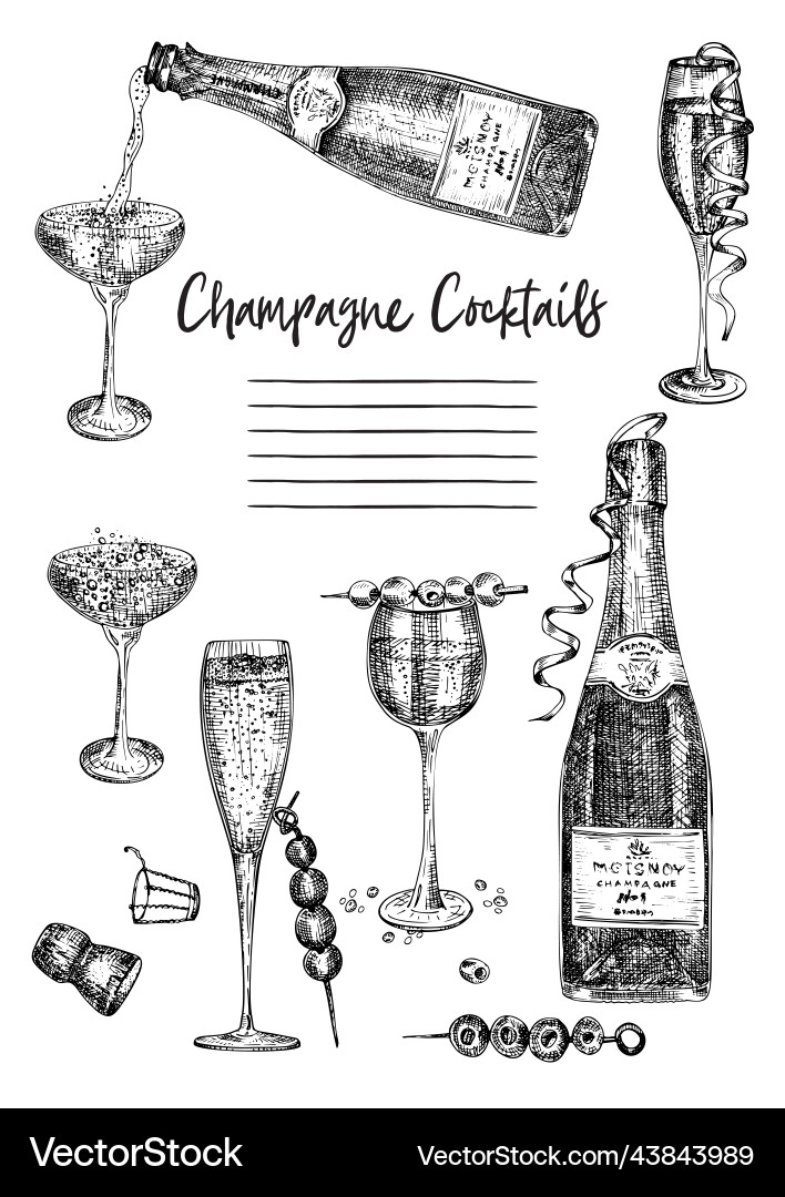 Vintage Cocktail Menu Design Document Template Stock Vector