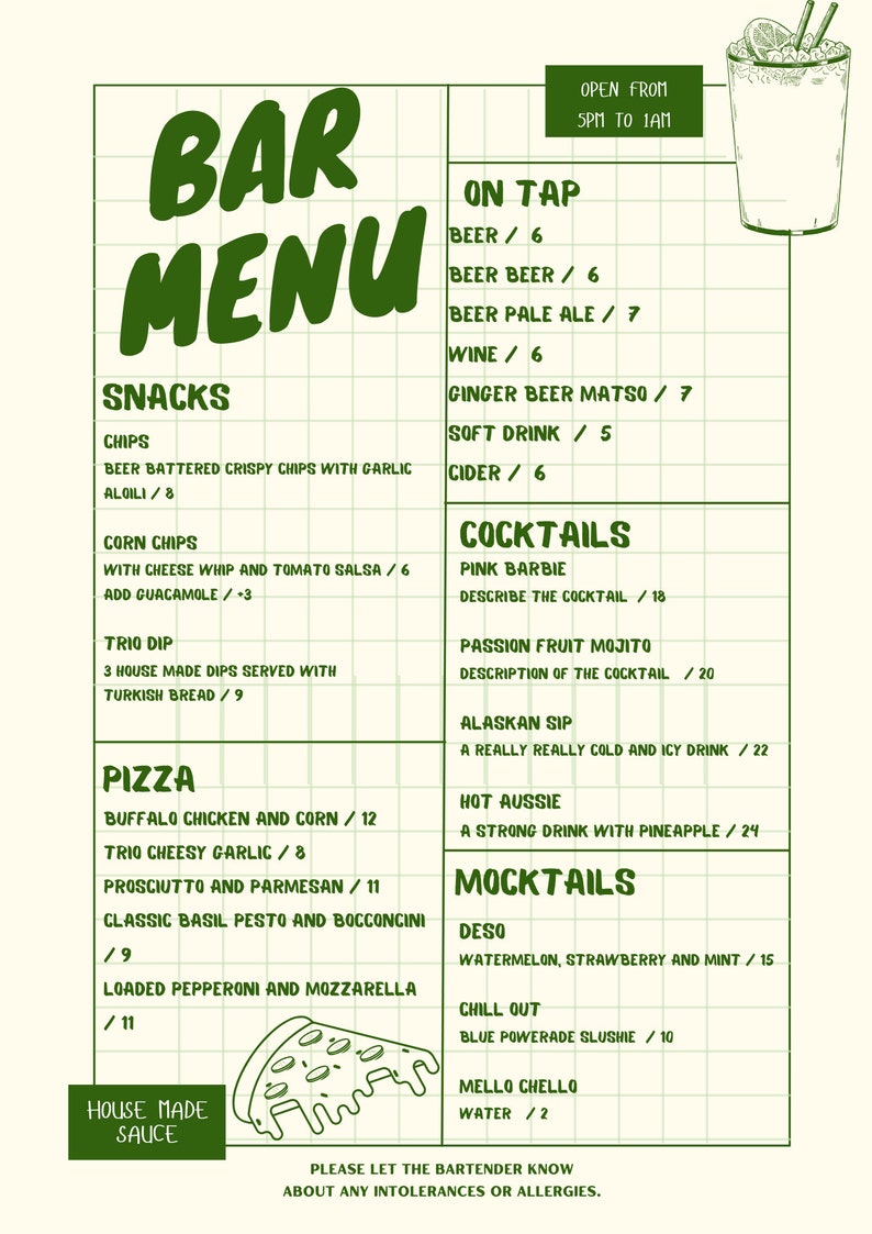 Restaurant / Bar Drinks Menu Template Design AI Free Download Pikbest