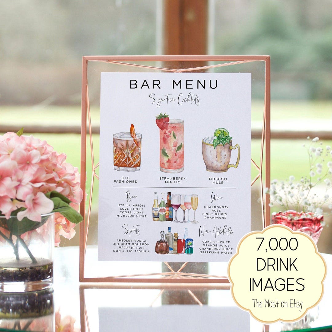 Printable Bar Menu Template Signature Cocktails Sign Download Etsy