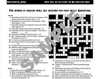 Crossword Puzzle Bar or Bat Mitzvah Invitation