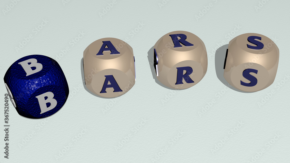 crosswords of bars arranged by cubic letters on a mirror floor concept