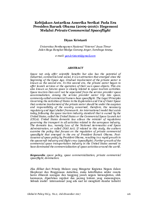 (PDF) Kebijakan Antariksa Amerika Serikat Pada Era Presiden Barack