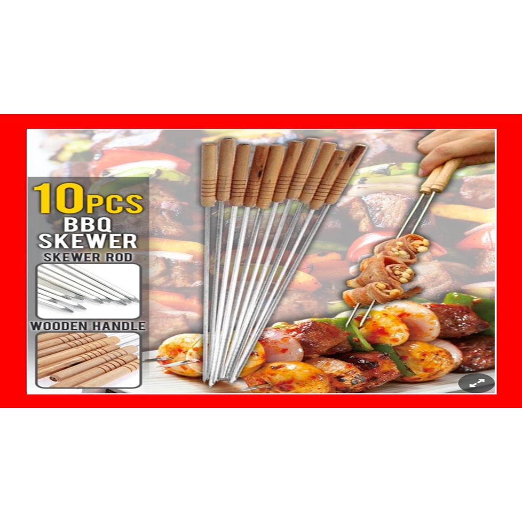 10pcs Stainless Steel BBQ Skewer Stick Barbecue Rod 30cm Shopee