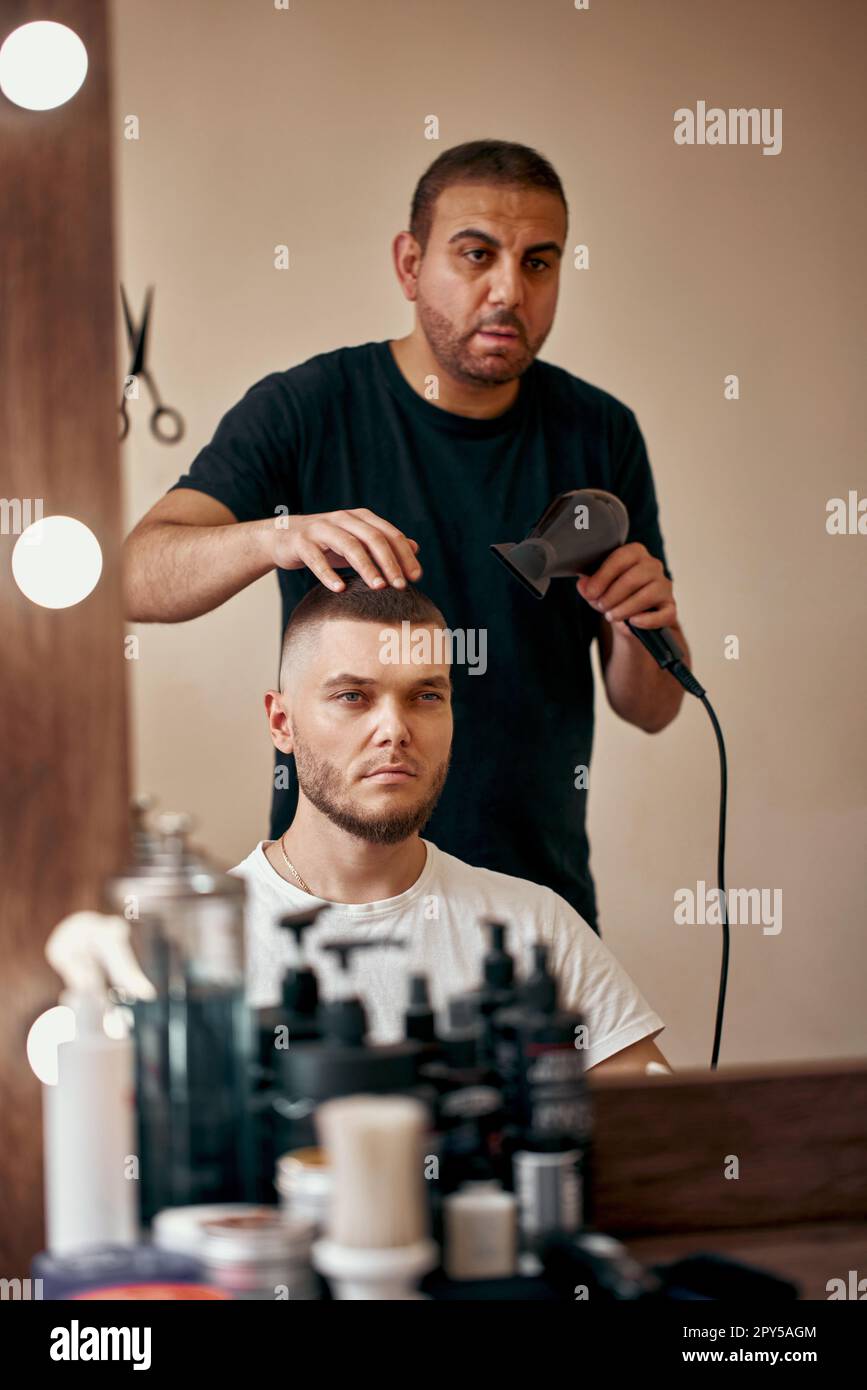 Barber and Bearded Man in Barber Shop Stock Image Image of handsome