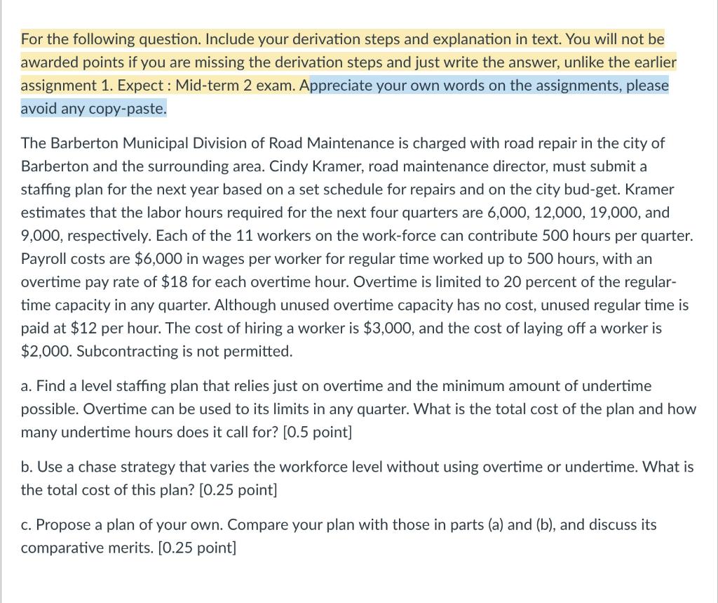 Solved The Barberton Municipal division of Road Maintenance Chegg com