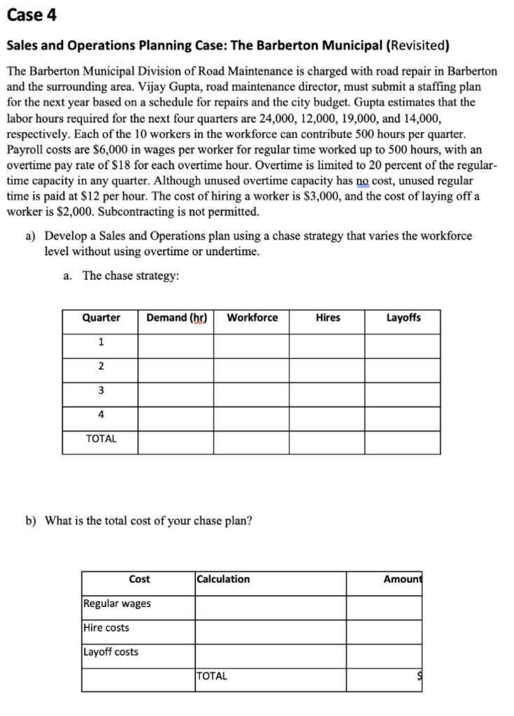 Solved Sales and Operations Planning Case: The Barberton Chegg com