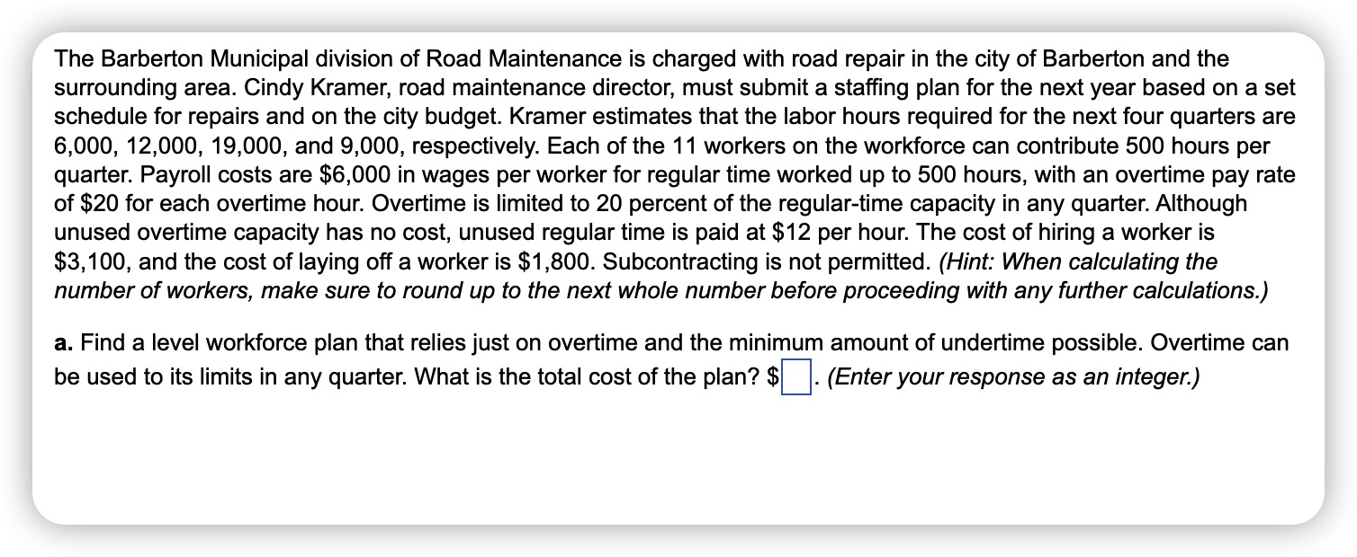 Solved The Barberton Municipal Division of Road Maintenance Chegg com