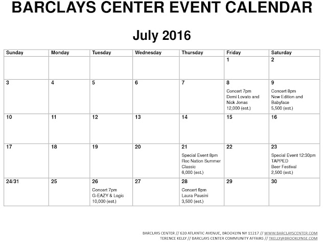 Barclays Center releases July 2015 event calendar also August and