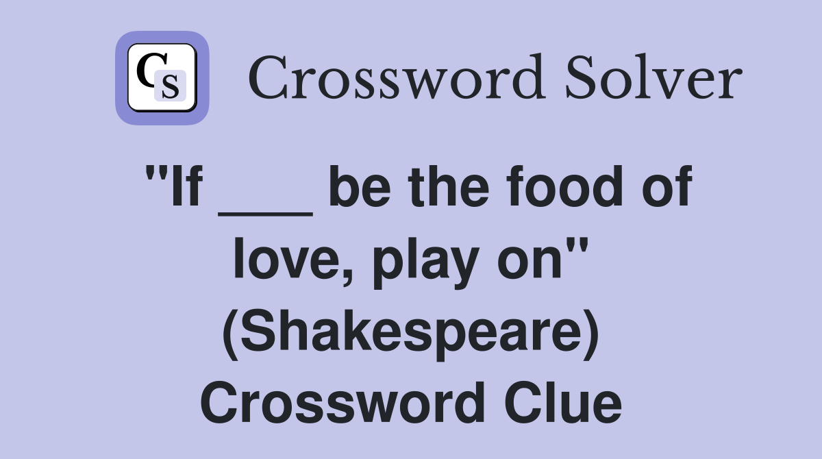 The food of love according to Shakespeare Crossword Clue Answers