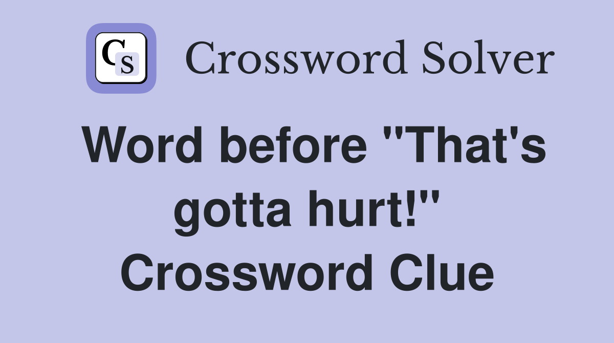 Word before quot That #39 s gotta hurt quot Crossword Clue Answers Crossword