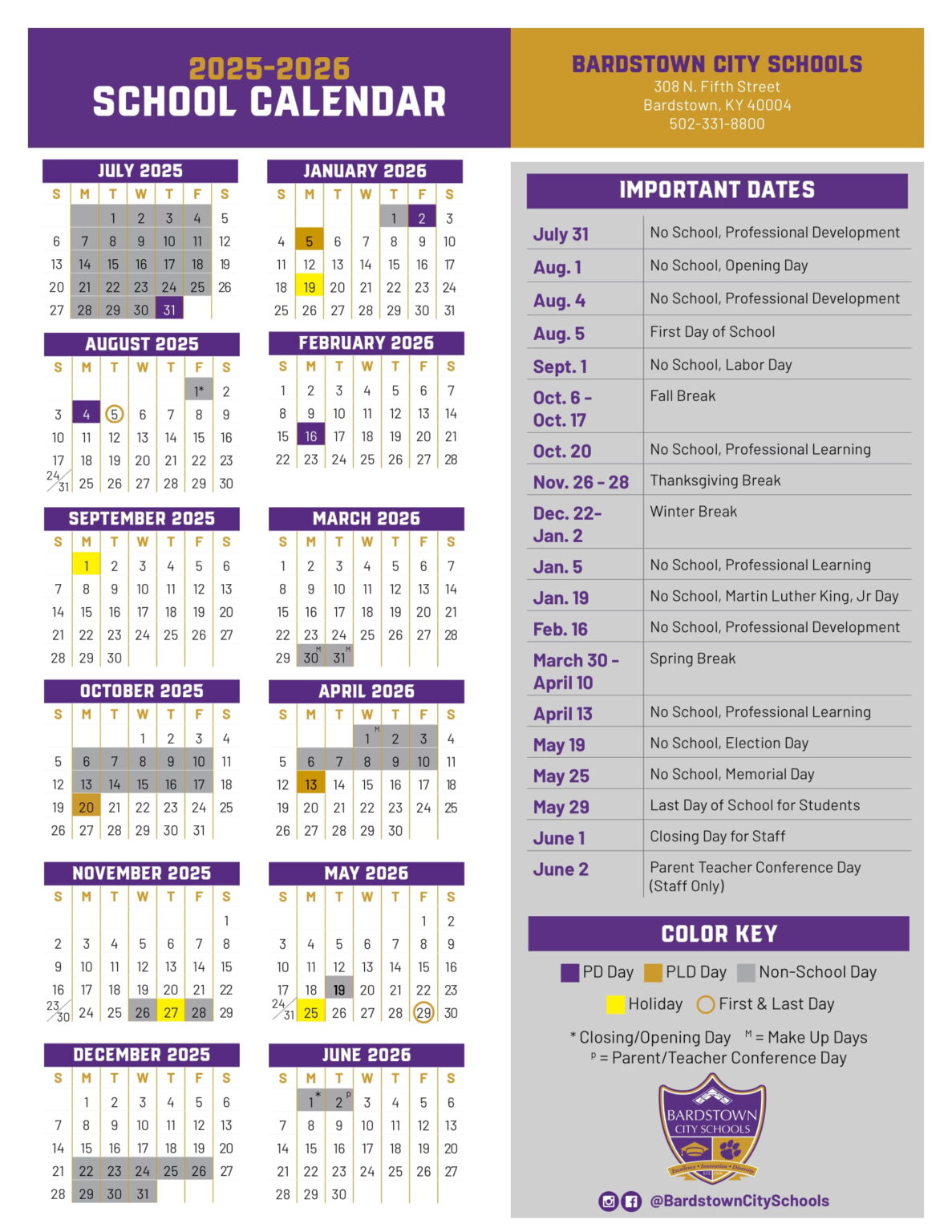 BARDSTOWN CITY SCHOOLS ky Calendar 25 26 Revised PDF EduCounty