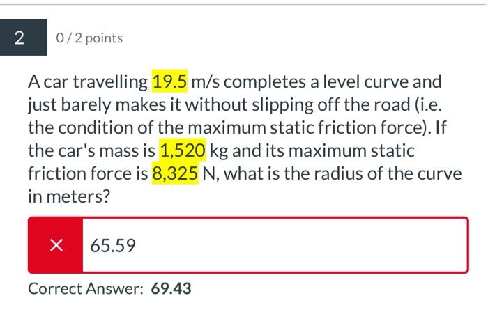 Solved A car travelling 19 5 m/s completes a level curve and Chegg com