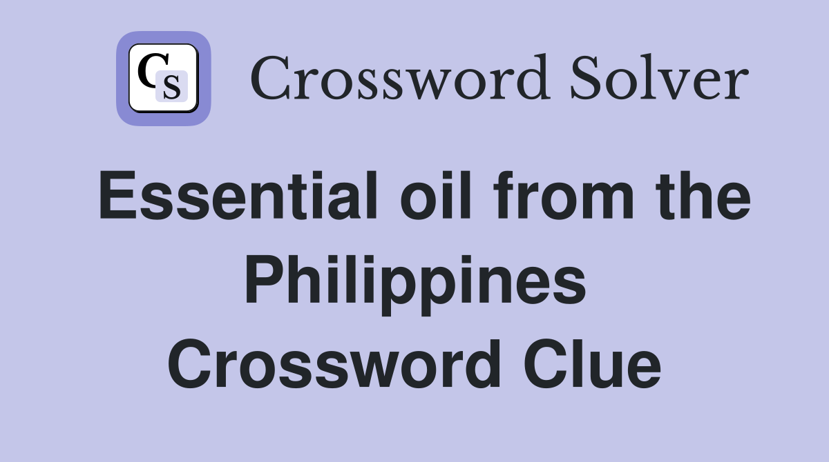 Essential oil from the Philippines Crossword Clue Answers Crossword