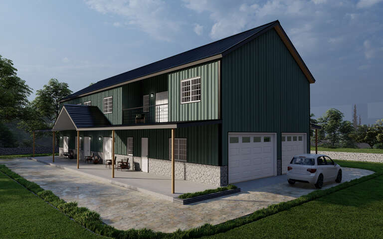 2 Story 2 Bedroom 1600 Square Foot Barndominium Style House with 2 Car