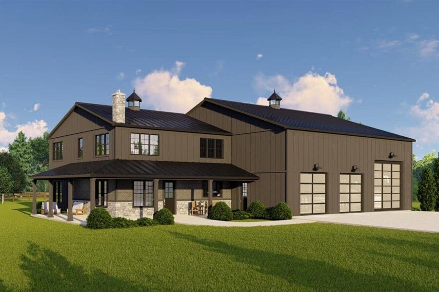3 Bed Craftsman Style Barndominium House Plan with PEMB Metal Framing