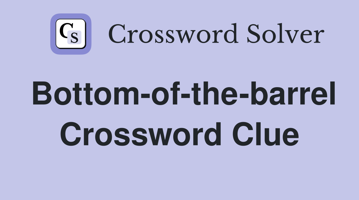 Bottom of the barrel Crossword Clue Answers Crossword Solver
