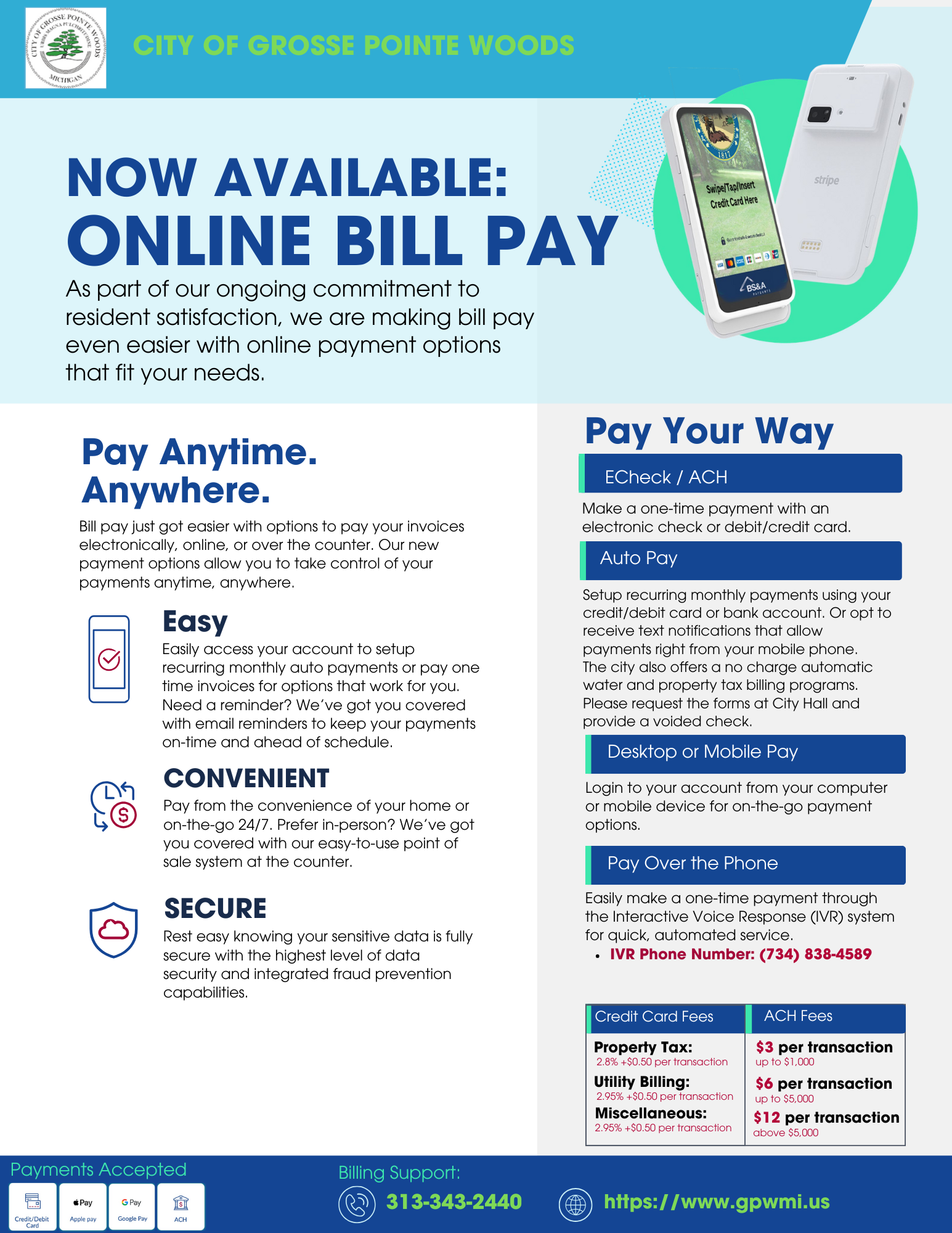 Credit Card Fee Schedule Grosse Pointe Woods Michigan