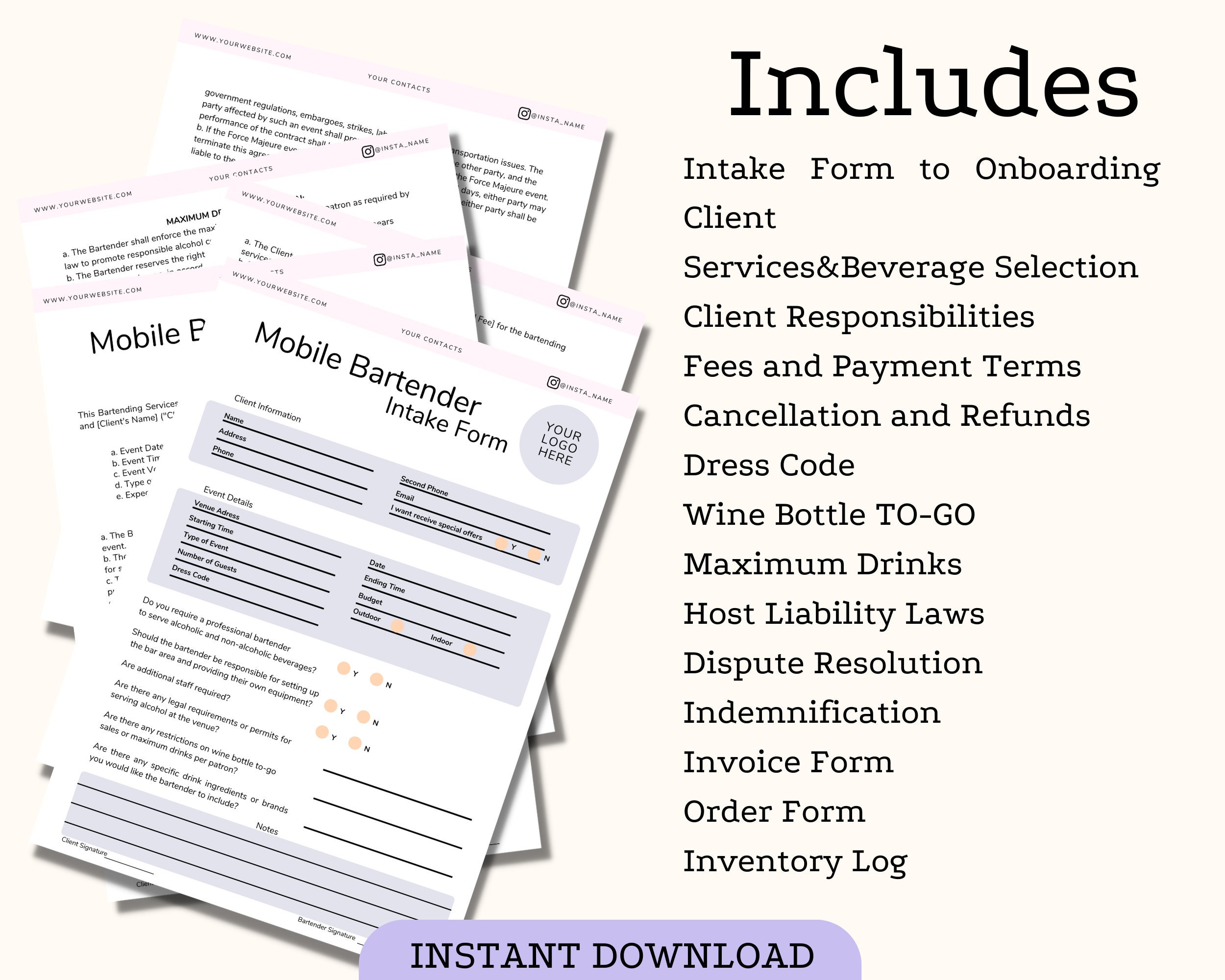Mobile Bar Contract Bundle Bartender Service Agreement Bartending