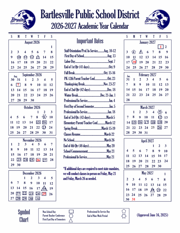 Bartlesville Public School Calendar 26 27 Updated EduCounty