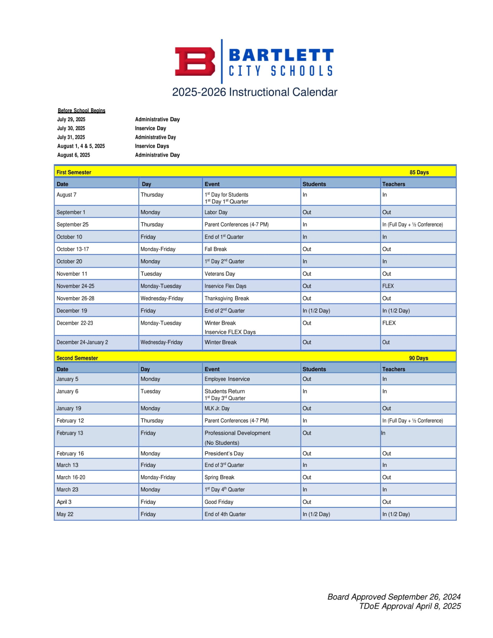Bartlett City Schools 2025 2026 Calendar 2025 26 Mara Stacey