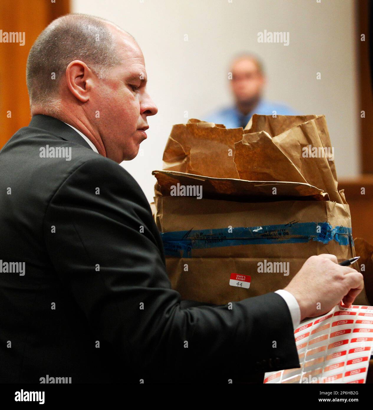 Assistant Attorney Gen Kevin O #39 Connor marks evidence during the trial