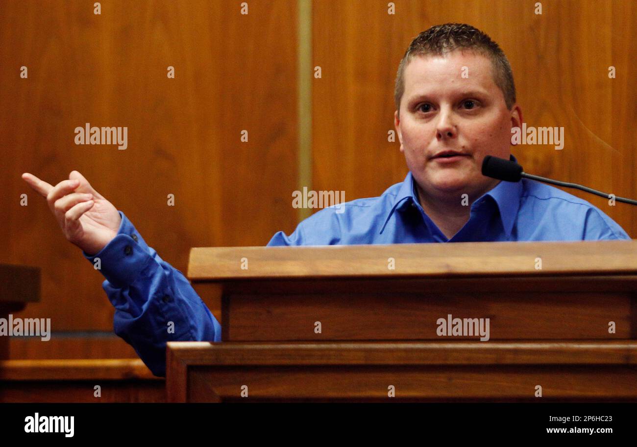 Dawn DeBolt gestures toward Adam Longoria during Longoria #39 s capital