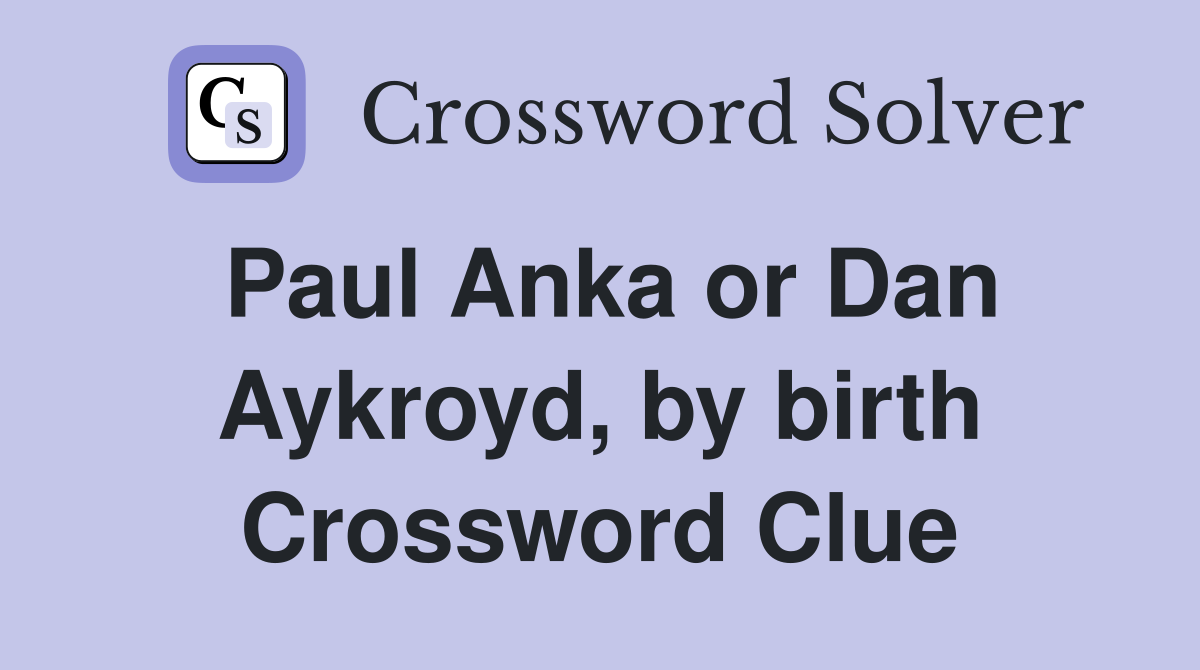 Paul Anka or Dan Aykroyd by birth Crossword Clue Answers Crossword