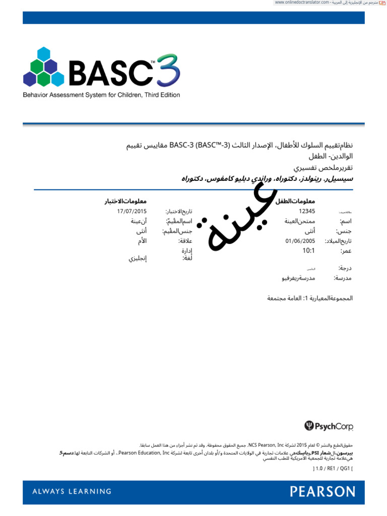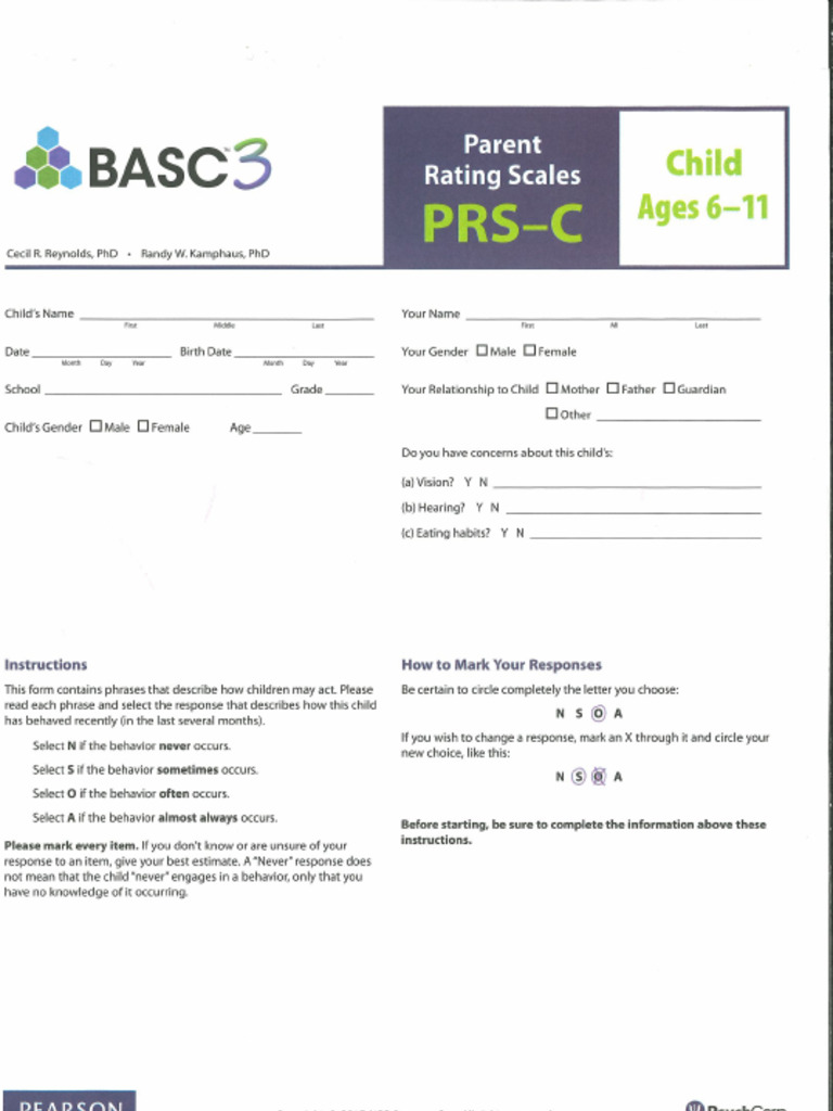 Behavior Assessment System for Children Third Edition (BASC 3) Template