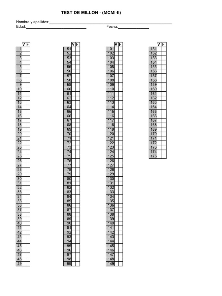 Test de Millon MCMI II (Hoja Respuestas) PDF