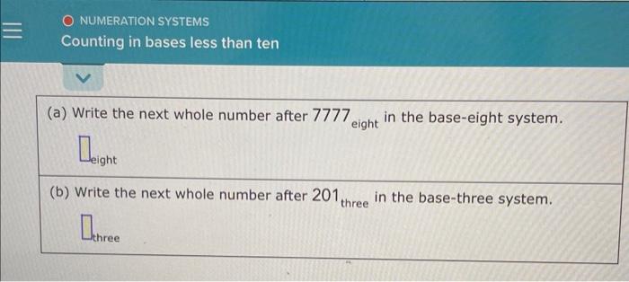 Solved O NUMERATION SYSTEMS Counting in bases less than ten Chegg com