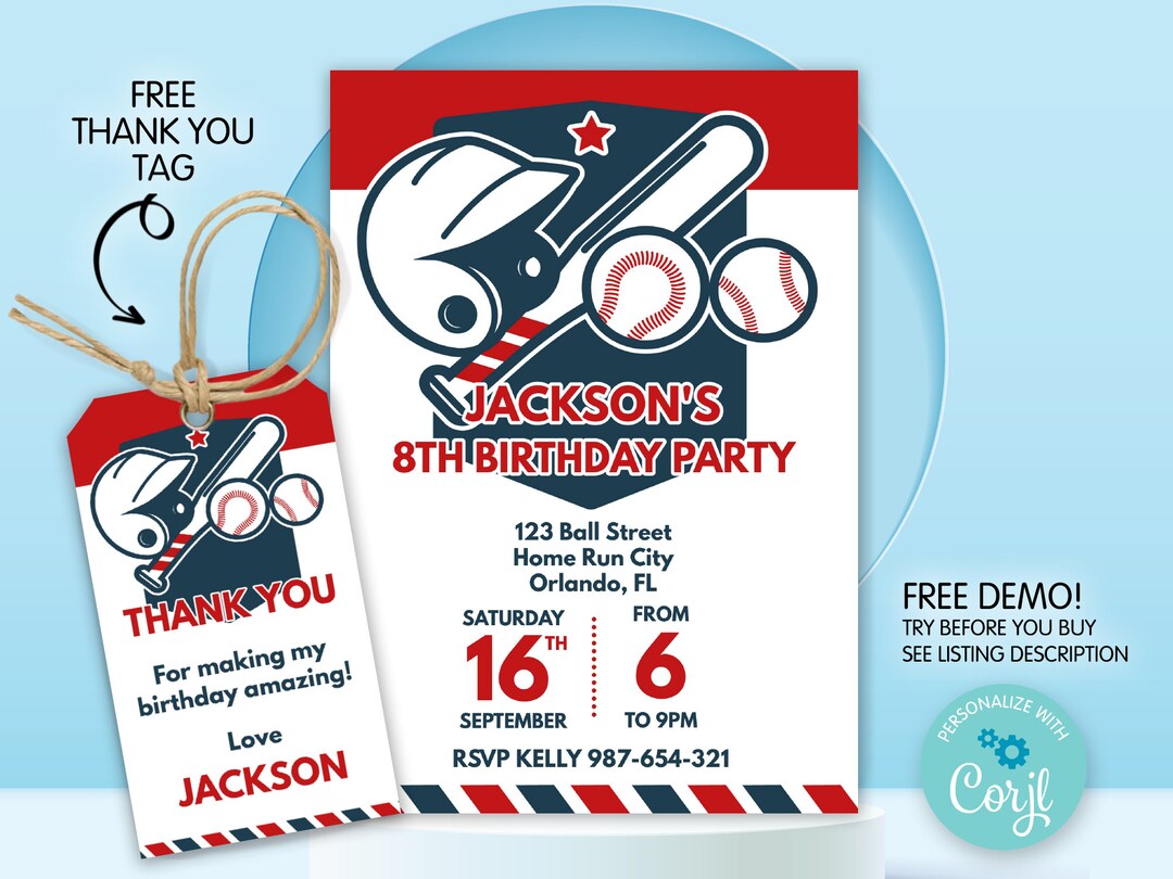 Baseball Birthday Invitation Template Editable Evite (canva) Etsy