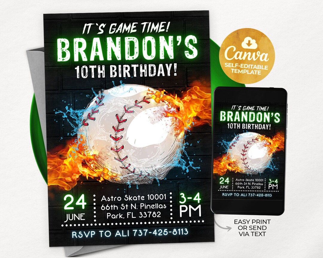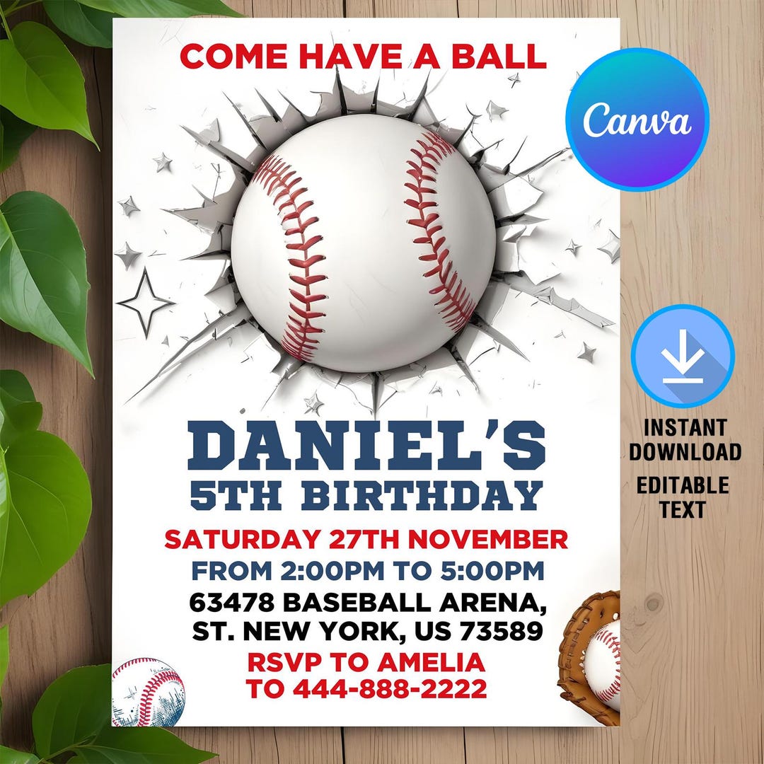 Editable Baseball Birthday Invitation: Canva Template (digital Download