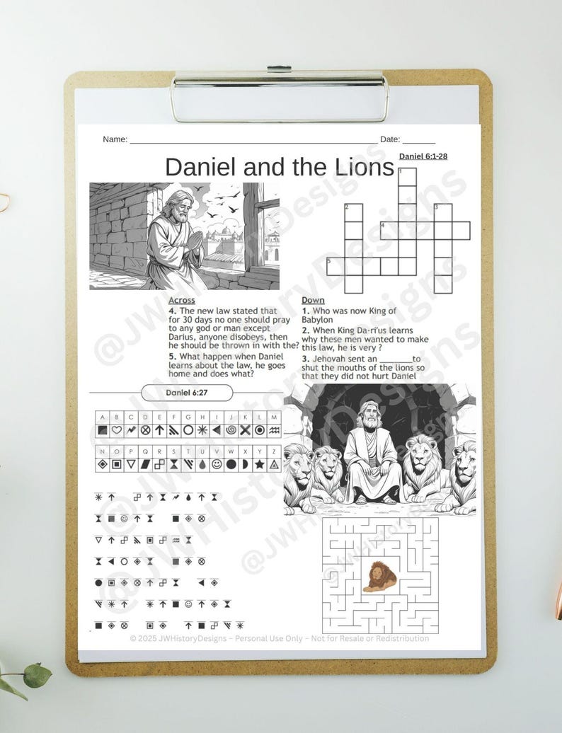Daniel in the Lions Den Kids and Family Printable JW Bible History of