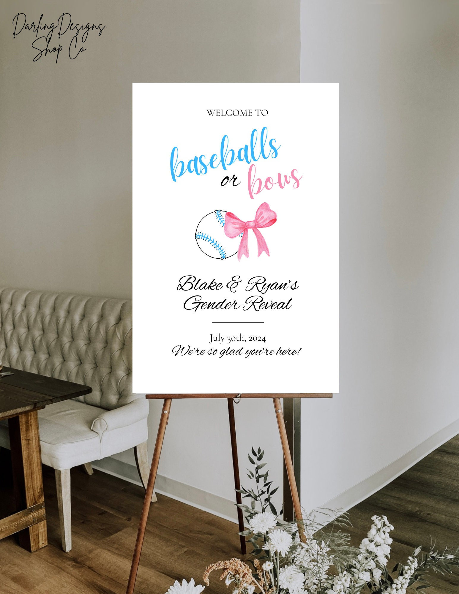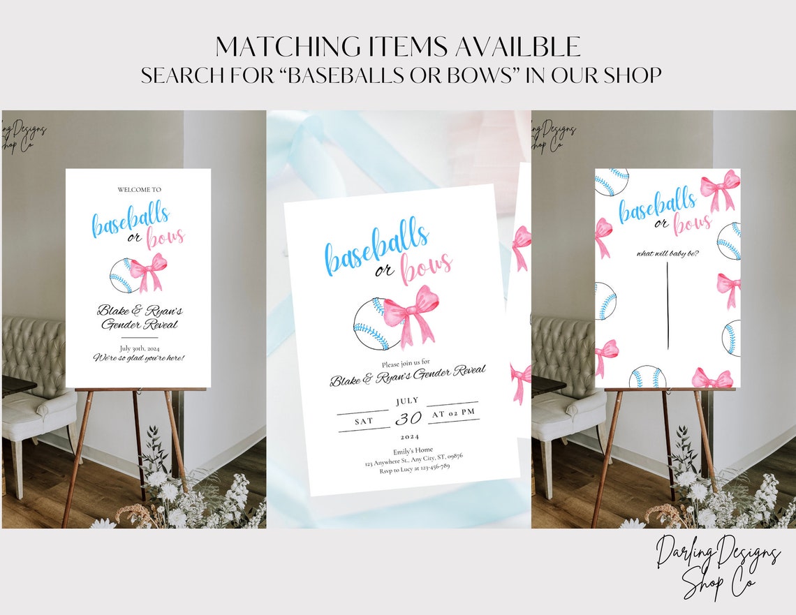 BASEBALLS OR BOWS Gender Reveal Baby Shower Sign Template Baby Shower