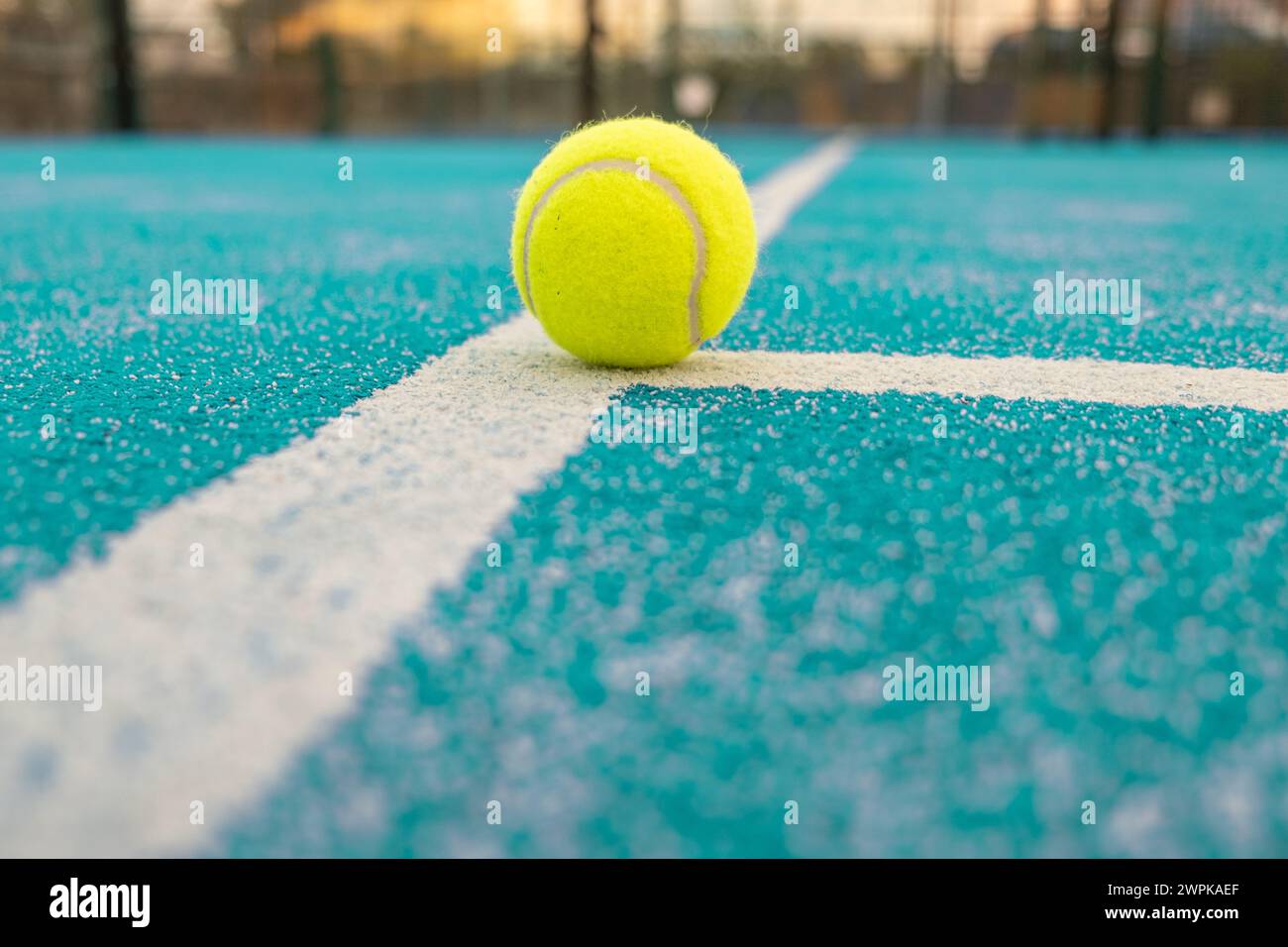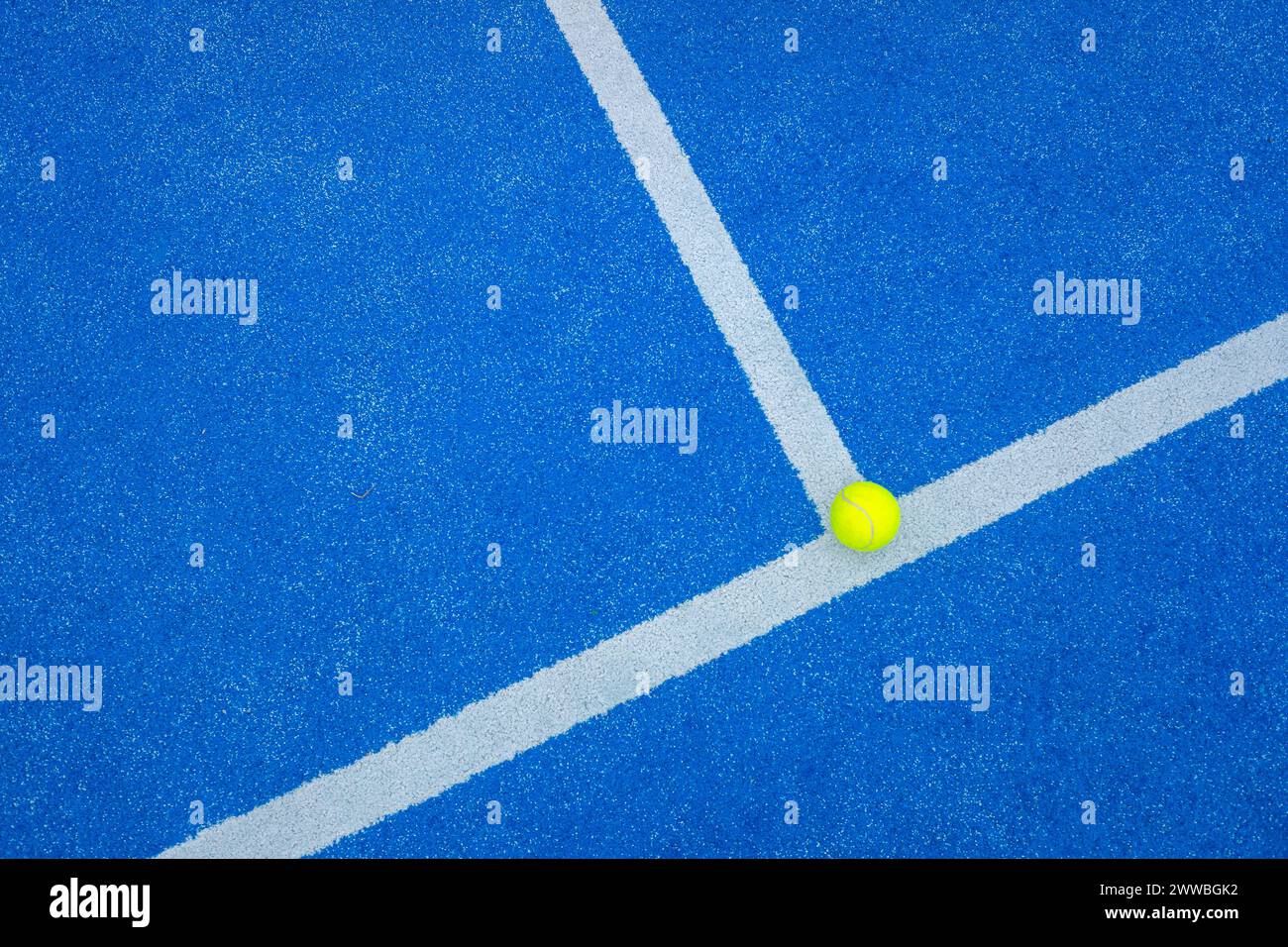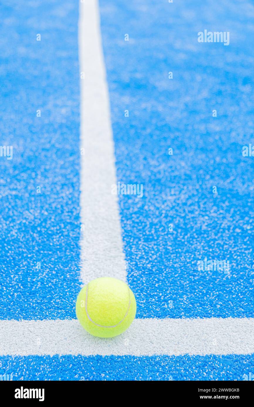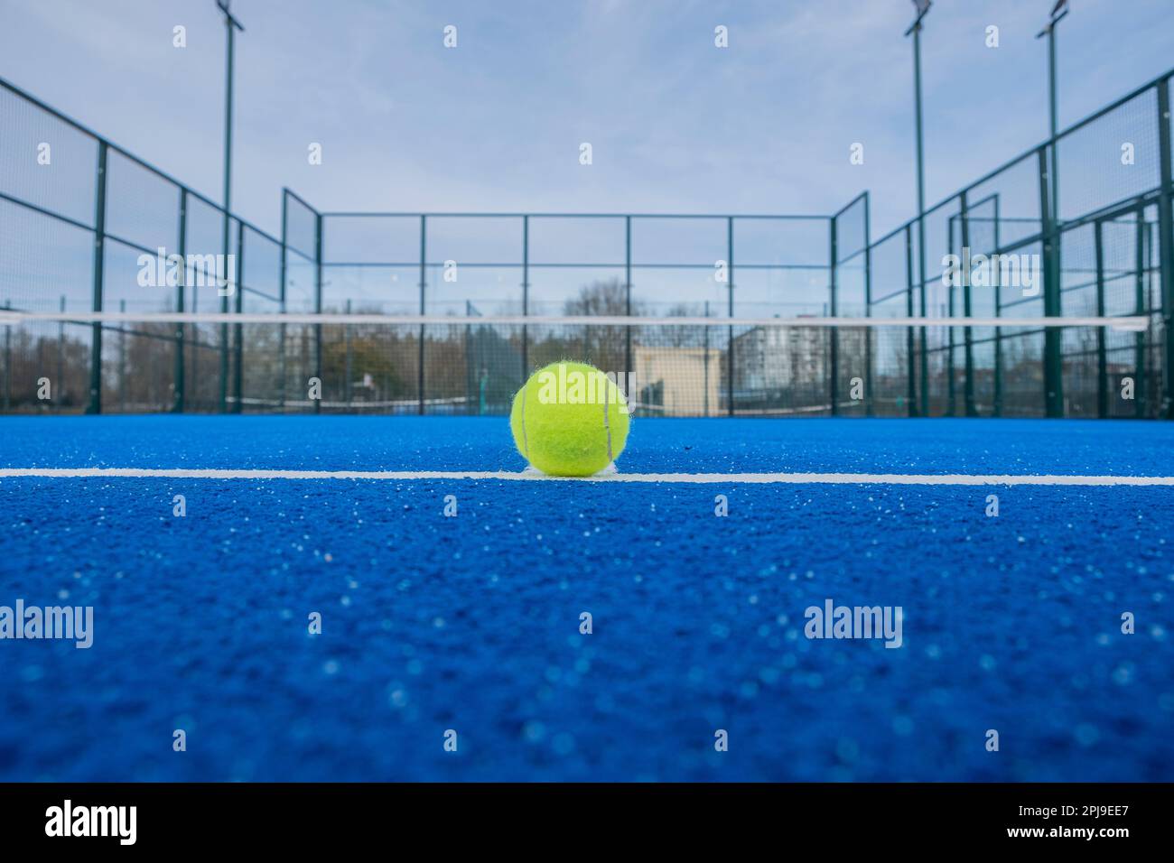 paddle tennis ball on the baseline of a blue paddle tennis court Stock