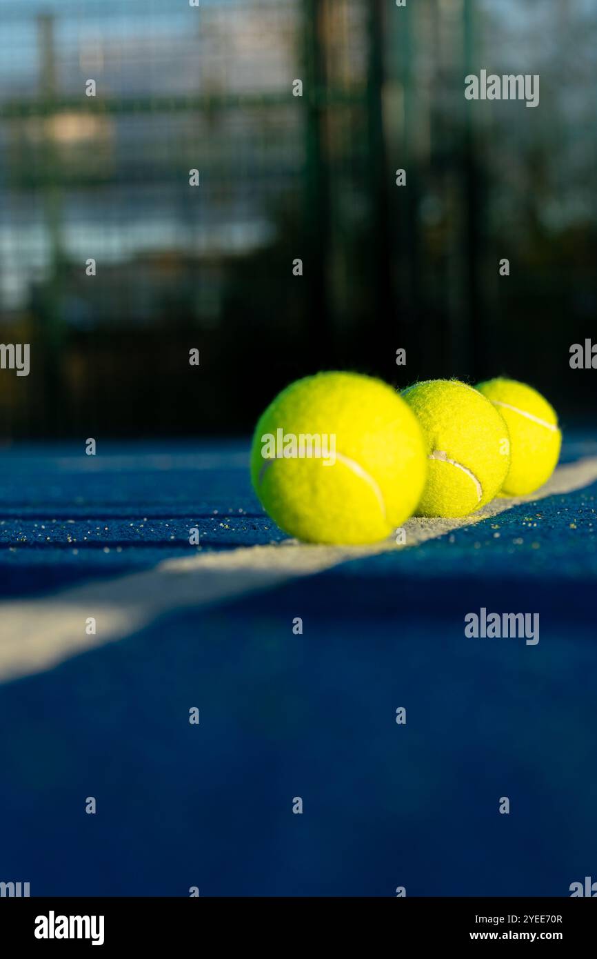 Selective Focus Three Balls Aligned on the Baseline of a Paddle Tennis
