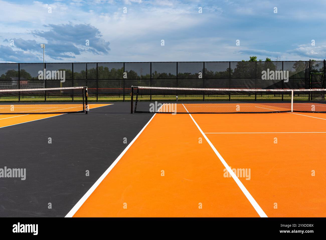 Low angle view of tennis court from baseline corner Stock Photo Alamy