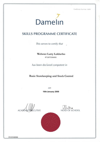 Webster Certificate Basic Storekeeping PDF