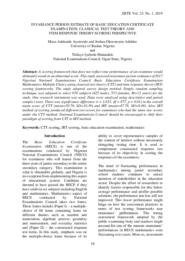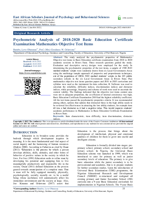 (PDF) Psychometric Analysis of 2018 2020 Basic Education Certificate