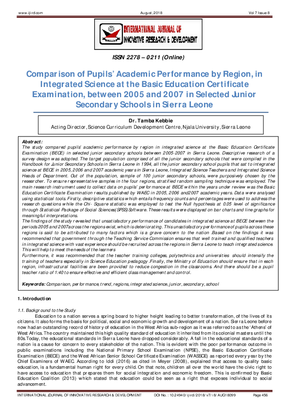 (PDF) Comparison of Pupils Academic Performance by Region in