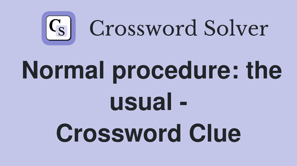 Normal procedure: the usual Crossword Clue Answers Crossword Solver