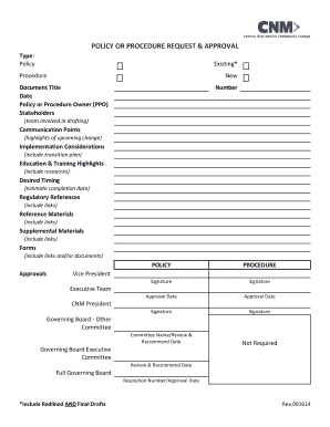 Fillable Online cnm POLICY OR PROCEDURE REQUEST APPROVAL Fax Email