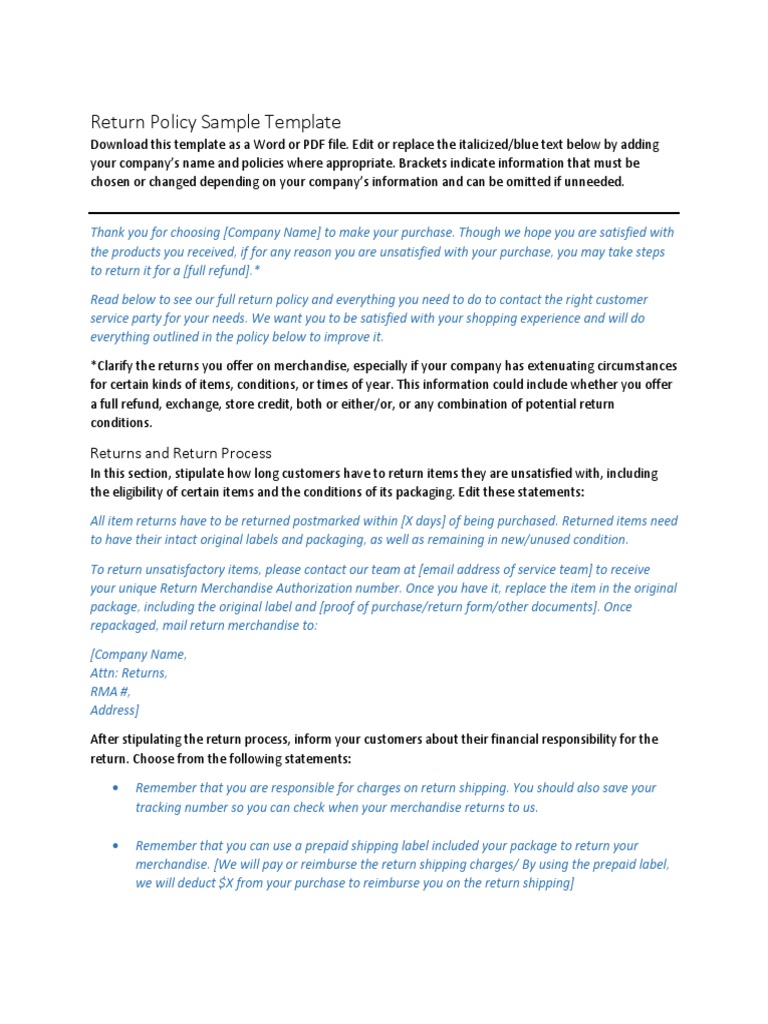 Here are some of the images for Basic Return Policy Template that we found in our website database.