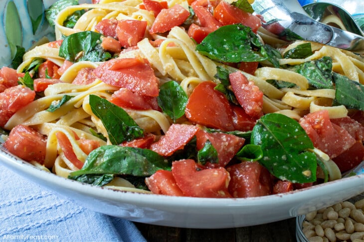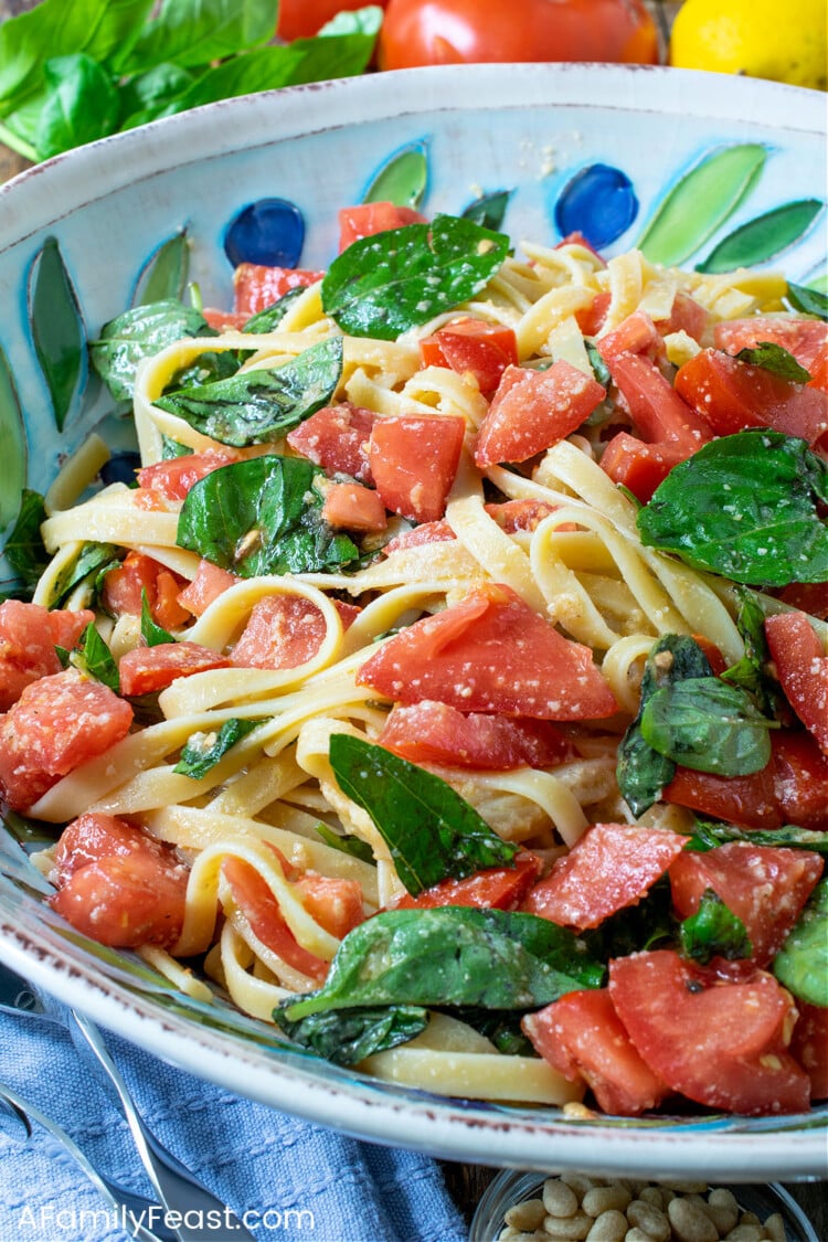 Pasta with Summer Tomatoes Basil Pine Nut Sauce A Family Feast®