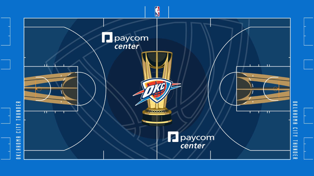 An Image of a Basketball Court with the OKC Thunder Logo Highlighted at