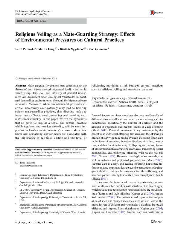 (PDF) Religious Veiling as a Mate Guarding Strategy: Effects of