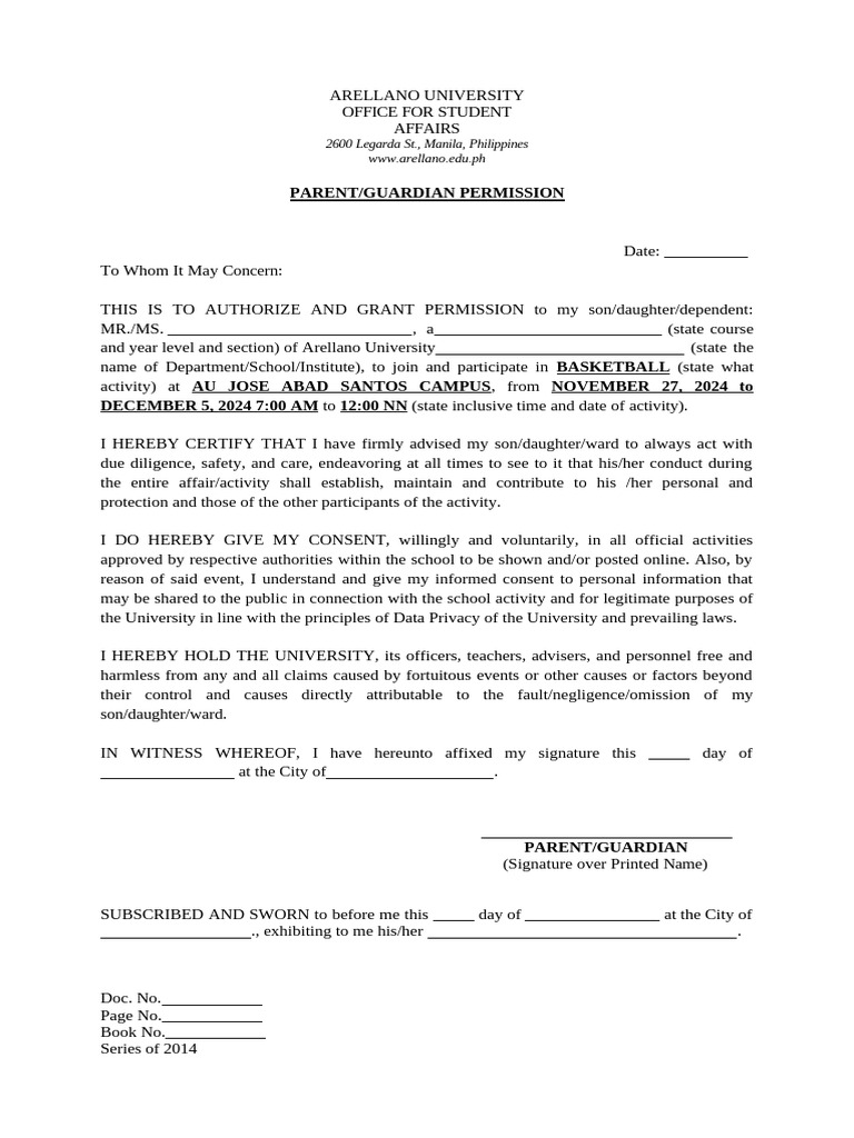Free Basketball Waiver Template to Edit Online