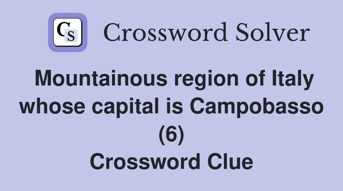 Mountainous region of Italy whose capital is Campobasso (6) Crossword