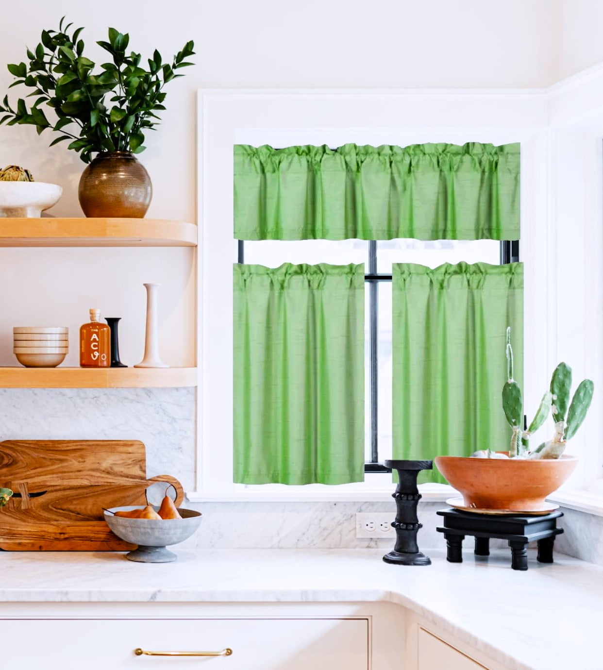 Set of 3 pieces Kitchen Curtain Blackout K4 Lime green color Rod Pocket