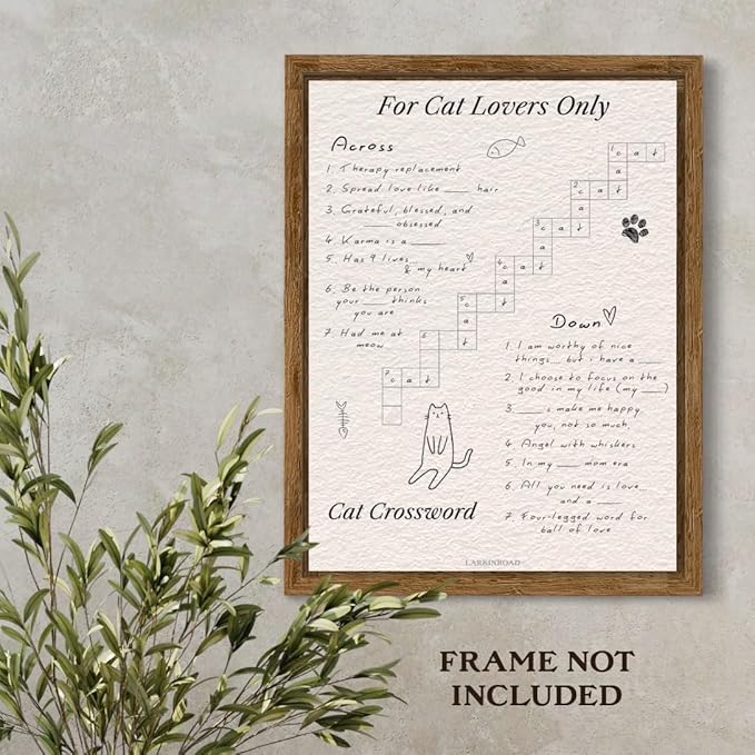 Amazon com: LARKINROAD Vintage Cat Room Decor Cat Crossword Art For